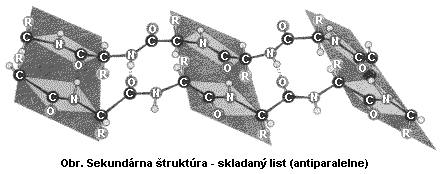 Skladaný list (β-štruktúra) môže mať usporiadanie paralelné alebo antiparalelné. Tvoria ho reťazce aminokyselín radených vedľa seba a spojených medzi sebou karboxylovými a aminoskupinami. Aminokyselinové zvyšky -R sú orientované nad a pod rovinu skladaného listu. Takúto štruktúru má napr. bielkovina keratín v nechtoch.